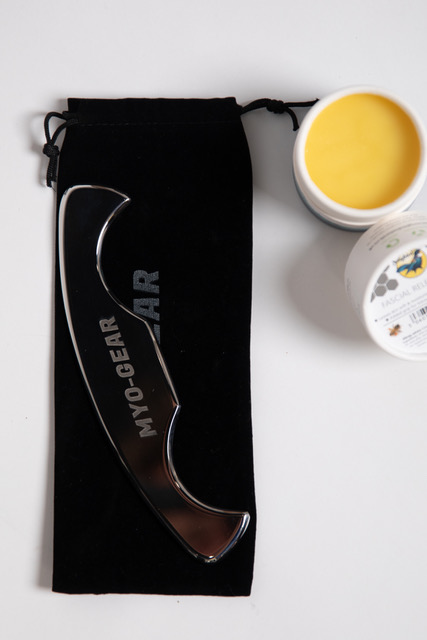 Eine der ersten Innovationen von Myo Gear war die Myo Gear 1.0 – ein IASTM-Tool aus Edelstahl, speziell für die Selbstanwendung entwickelt. Auf den ersten Blick erinnert das Tool an bestehende Faszieninstrumente, doch Bryan hat das Design weiterentwickelt: mit optimalem Halt, passenden Winkeln und abgerundeten Kanten für eine möglichst einfache und effektive Nutzung. Die Myo Gear 1.0 ist ein echter Allrounder und eignet sich für nahezu alle Muskelgruppen. Künftige Erweiterungen des Sortiments umfassen eine kleinere Variante für gezielte Anwendungen sowie ein größeres Modell für Oberschenkelrückseiten und Rückenmuskulatur.